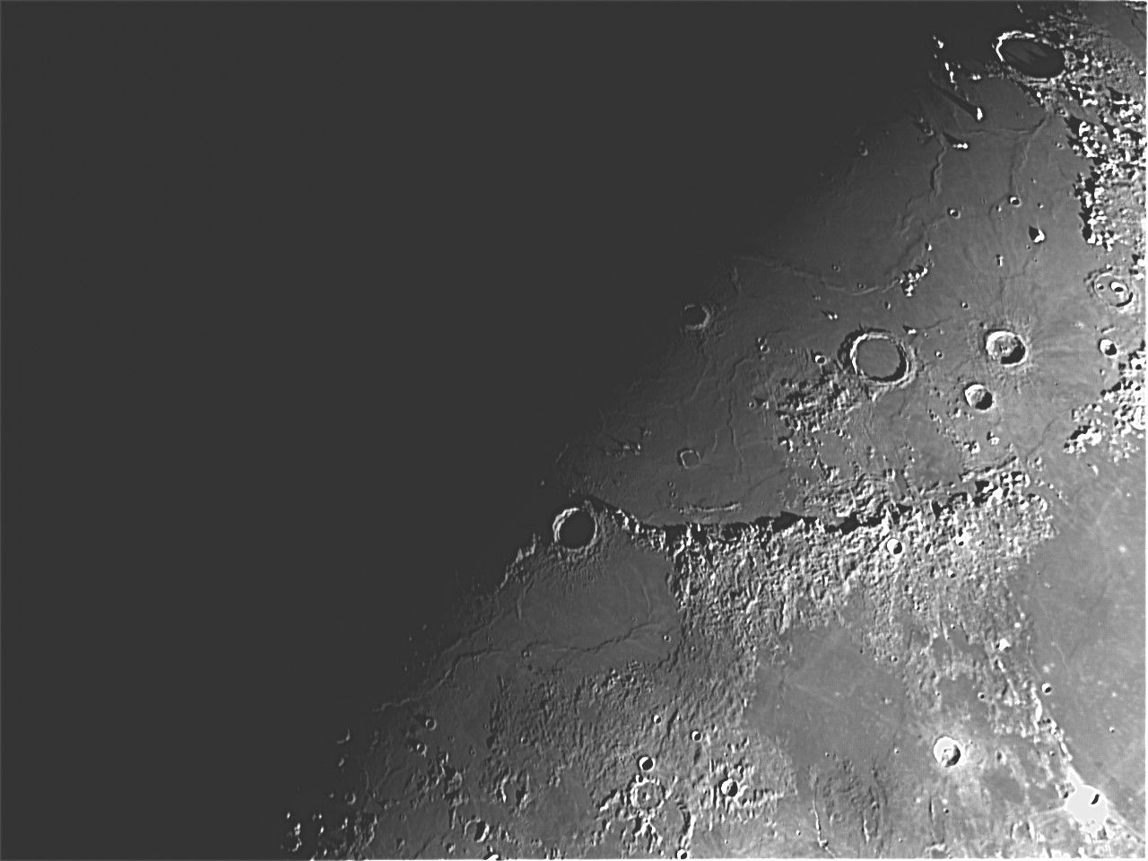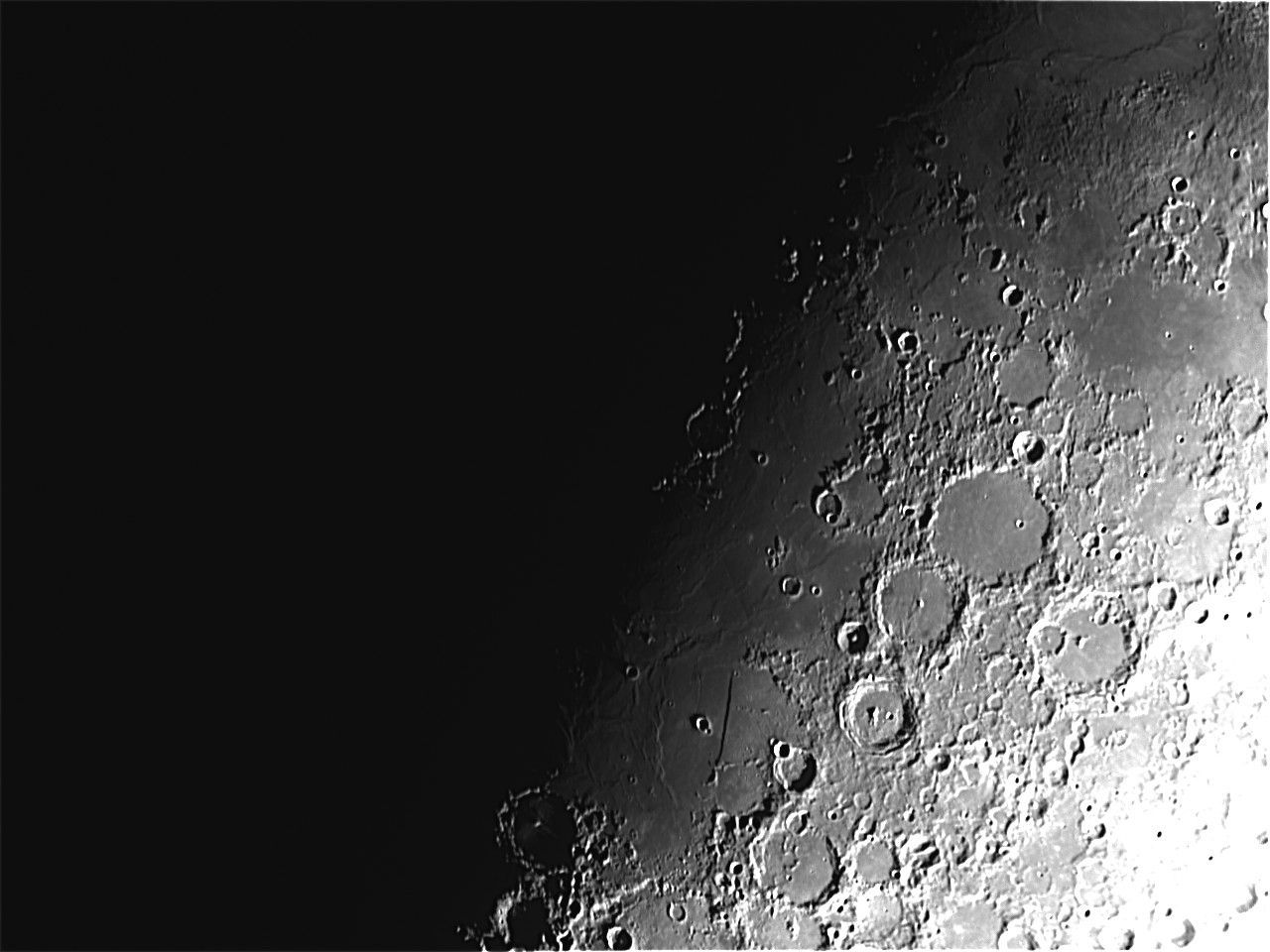 Ptolemaeus, Alphonsus en Arzachel. Links van de Rechte Wand staat de
