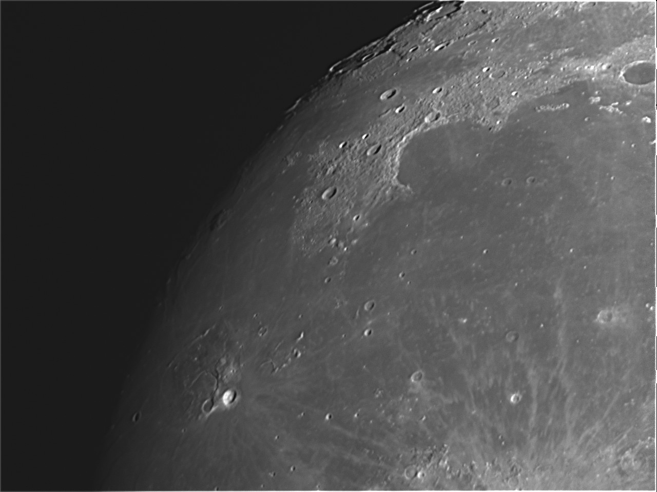 kraterrand op de bodem van de krater. Even ten zuiden van Plato is de